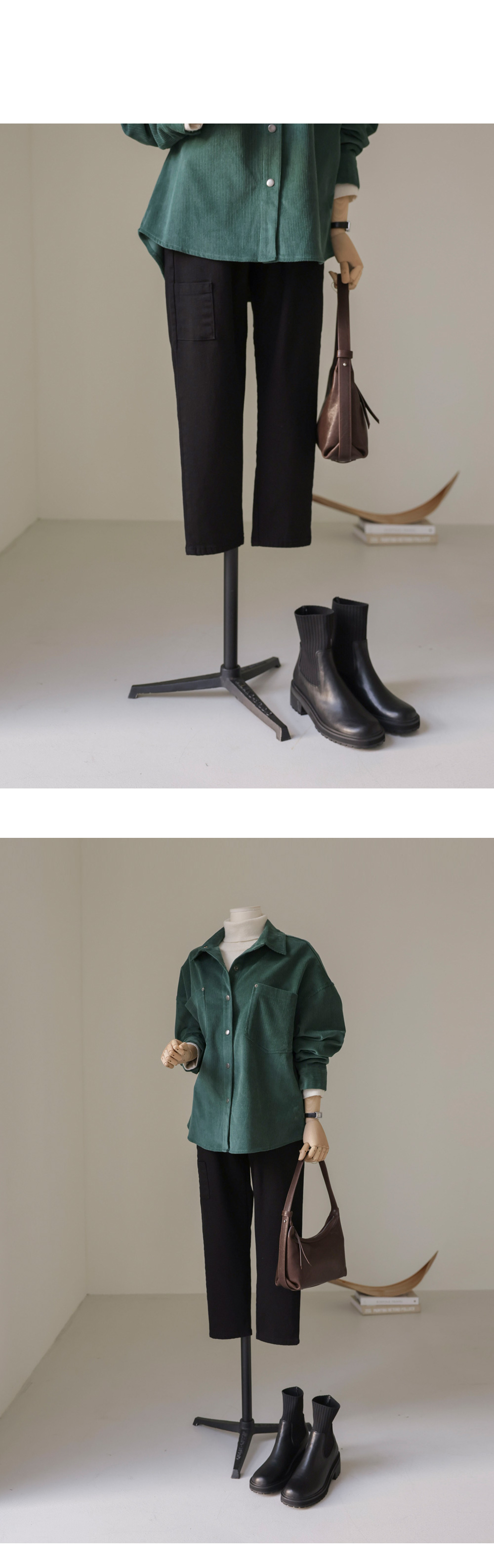 코디정보 가론트 골덴 자켓 _ 그린노츠그 배기팬츠 _ 블랙